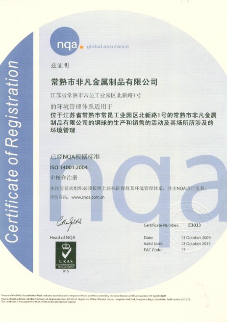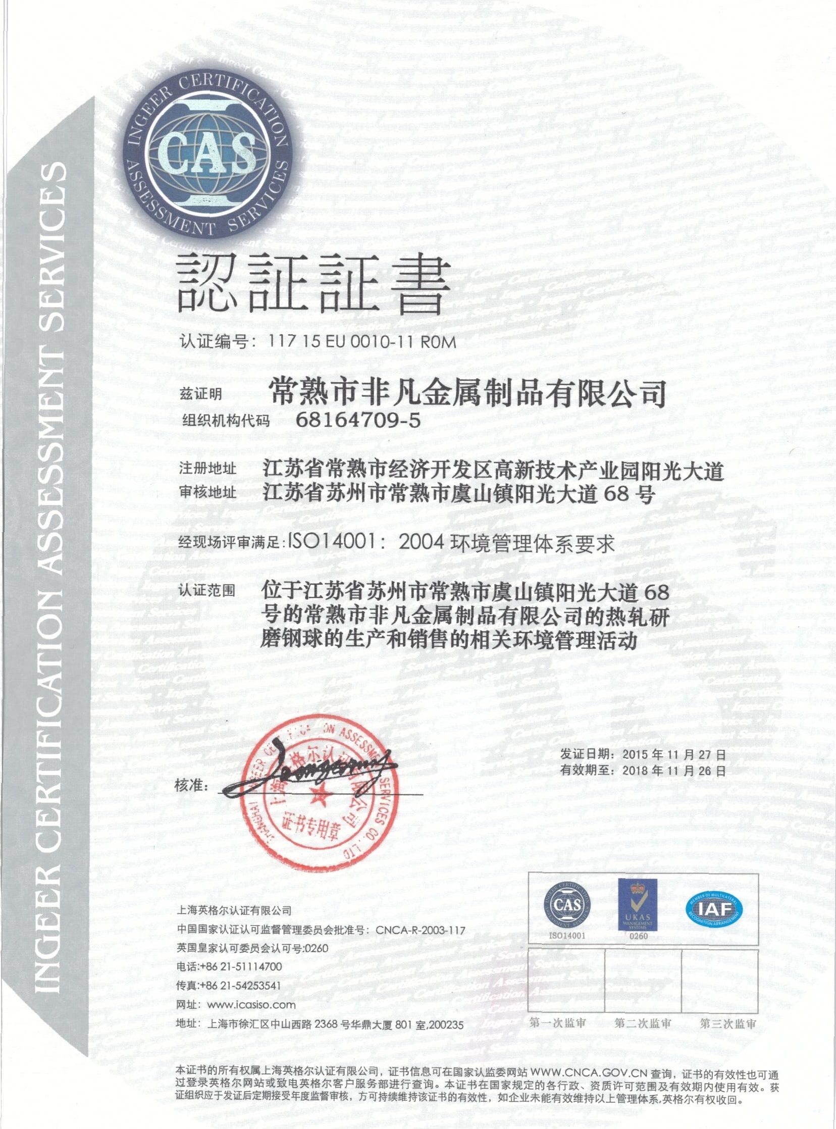 ISO14001體系認證書