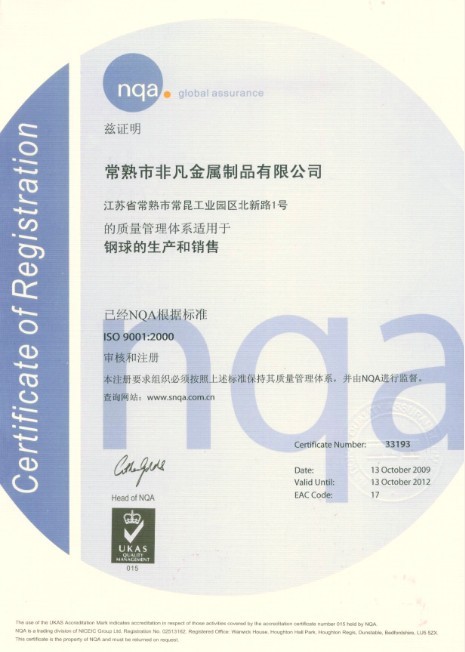 ISO9001體系認證書